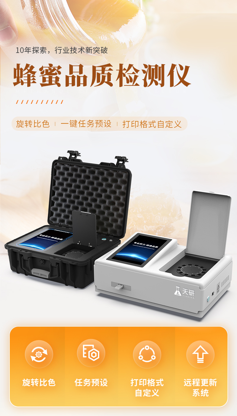 山東天研儀器有限公司生產(chǎn)的高智能蜂蜜檢測儀為集成化食品安全快速檢測分析設(shè)備,采用臺(tái)式一體化設(shè)計(jì),可快速檢測200多種食品安全項(xiàng)目,包含非食用化學(xué)物質(zhì)、濫用食品添加劑、農(nóng)藥殘留、獸藥殘留、重金屬、病害肉、營養(yǎng)強(qiáng)化劑、抗生素類殘留、激素類殘留、真菌毒素類殘留、化學(xué)類殘留等項(xiàng)目的定性定量檢測。該高智能食品安全檢測儀為集成化食品安全快速檢測分析設(shè)備,目前已于食藥監(jiān)局、衛(wèi)生部門、高教院校、科研院所、農(nóng)業(yè)部門、養(yǎng)殖場、屠宰場、食品肉產(chǎn)品深加工企業(yè)及檢驗(yàn)檢疫部門等單位廣泛使用。