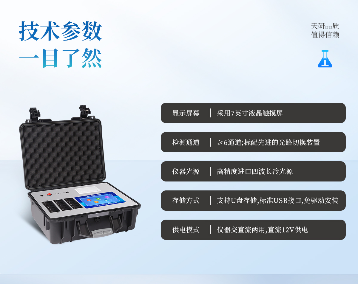 | 主控芯片采用ARM Cortex-A7,RK3288/4核處理器,主頻1.88Ghz,運(yùn)轉(zhuǎn)速度更快速,穩(wěn)定性更強(qiáng)。 | 顯示方式:7英寸液晶觸摸屏顯示,人性化中文操作界面,讀數(shù)直觀、簡單。 | 交直流兩用,直流12V供電,可連接車載電源,可配6ah大容量充電鋰電池,方便戶外流動(dòng)測試。 | 四波長冷光源,6個(gè)檢測通道,每個(gè)通道均配置410、520、590、630nm波長光源,標(biāo)配**的光路切換裝置,專業(yè)光路切換功能可實(shí)現(xiàn)*多64波長,并且所有檢測項(xiàng)目可實(shí)現(xiàn)所有通道同時(shí)檢測。 | 智能恒流穩(wěn)壓,光強(qiáng)自動(dòng)調(diào)節(jié)與校準(zhǔn),長時(shí)間連續(xù)工作光源無溫漂現(xiàn)象。 | 內(nèi)置新國家限量標(biāo)準(zhǔn),與所測結(jié)果進(jìn)行現(xiàn)場比對(duì),并持續(xù)更新標(biāo)準(zhǔn)。 | 不間斷進(jìn)樣,連續(xù)檢測 | 樣本編號(hào)自動(dòng)累加。 | 數(shù)據(jù)無線上傳平臺(tái),并可從平臺(tái)導(dǎo)出為Excel表格。 | 檢測結(jié)果存儲(chǔ)容量20萬條 | 同時(shí)支持U盤拷貝,標(biāo)準(zhǔn)USB接口,免驅(qū)動(dòng)插拔。 | 檢測項(xiàng)目可擴(kuò)充,固件可升級(jí) | 儀器尺寸:43×35×19cm, 主機(jī)凈重:5.1kg |