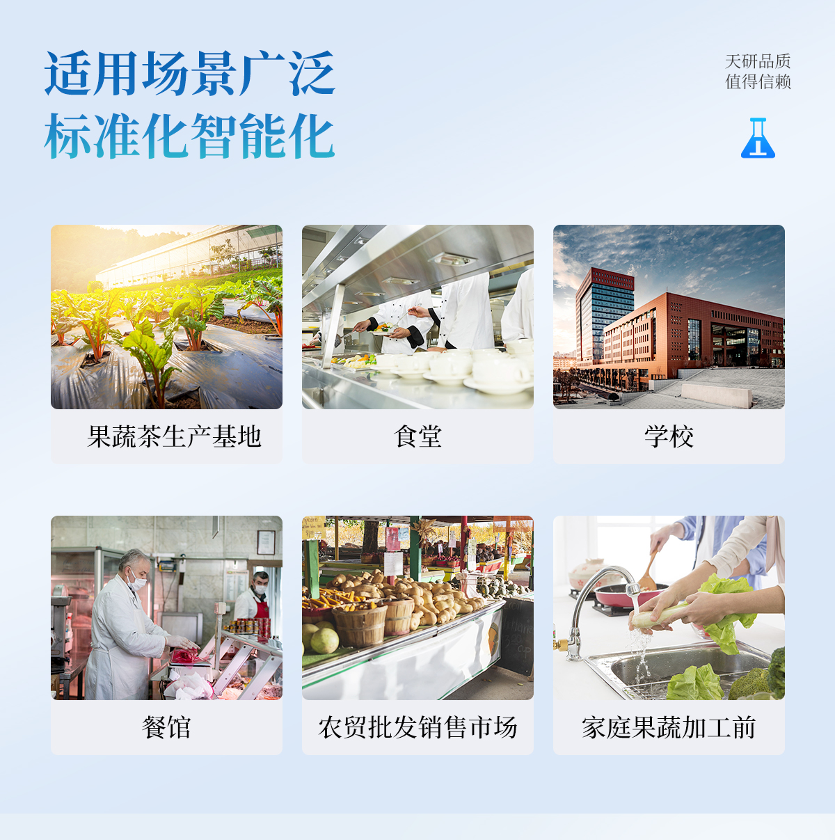 廣泛應(yīng)用于主要用于蔬菜、水果、茶葉、糧食、農(nóng)副產(chǎn)品等食品中有機(jī)磷和氨基甲酸酯類農(nóng)藥殘留的快速檢測(cè);此外還可用于果蔬茶生產(chǎn)基地和農(nóng)貿(mào)批發(fā)銷售市場(chǎng)現(xiàn)場(chǎng)檢測(cè),餐館、學(xué)校、食堂、家庭果蔬加工前的安全速測(cè)等。