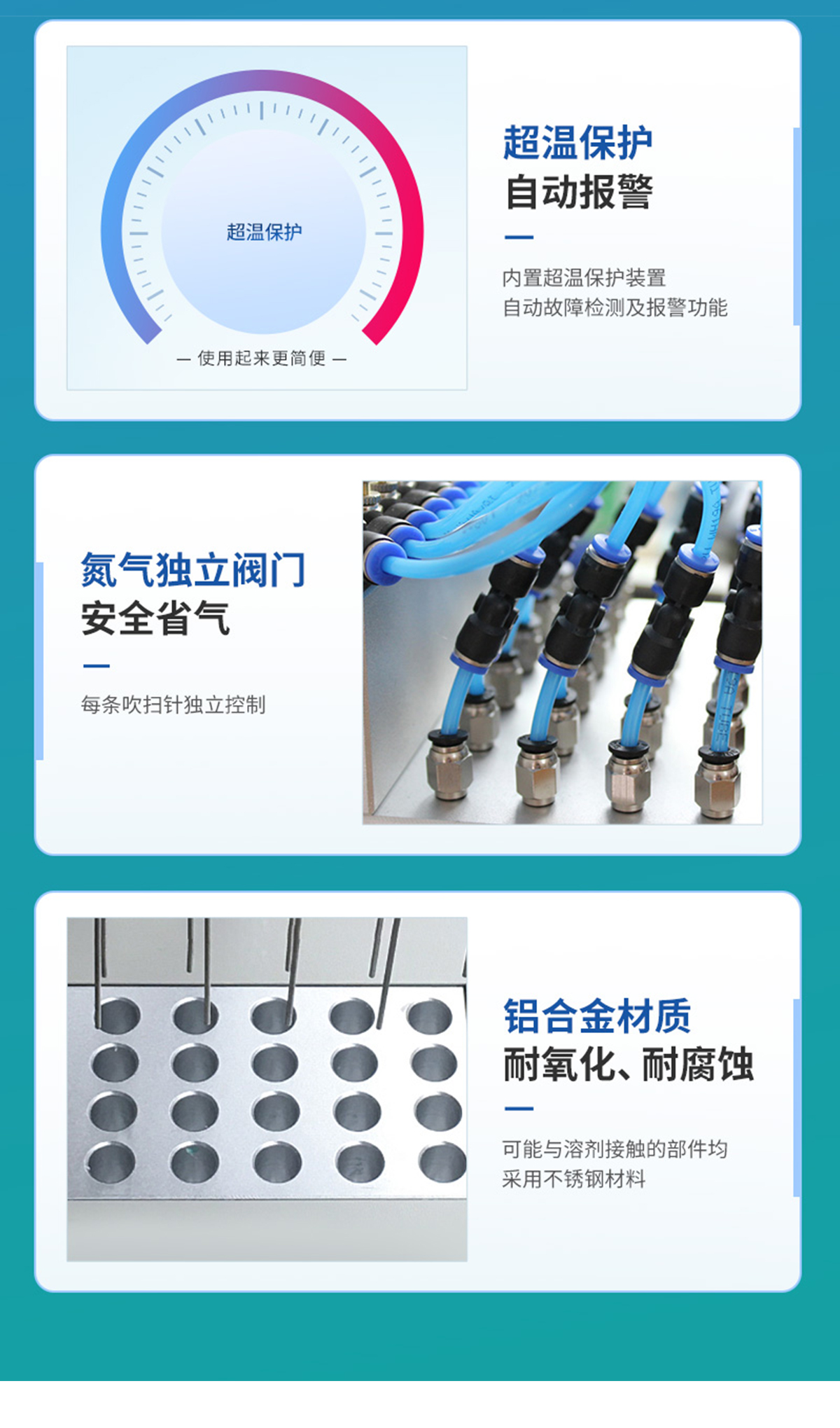 水浴氮吹儀采用吹掃捕集技術(shù),同時(shí)可對(duì)樣品進(jìn)行控溫加熱,利用氮?dú)獾榷栊詺怏w快速、可控、連續(xù)地吹到樣品表面來(lái)達(dá)到樣品溶液快速無(wú)氧濃縮。該方法具有省時(shí)、便捷、準(zhǔn)確的特點(diǎn)。廣泛用于食品安全、醫(yī)藥、農(nóng)藥殘留檢測(cè)、臨床藥代等領(lǐng)域。