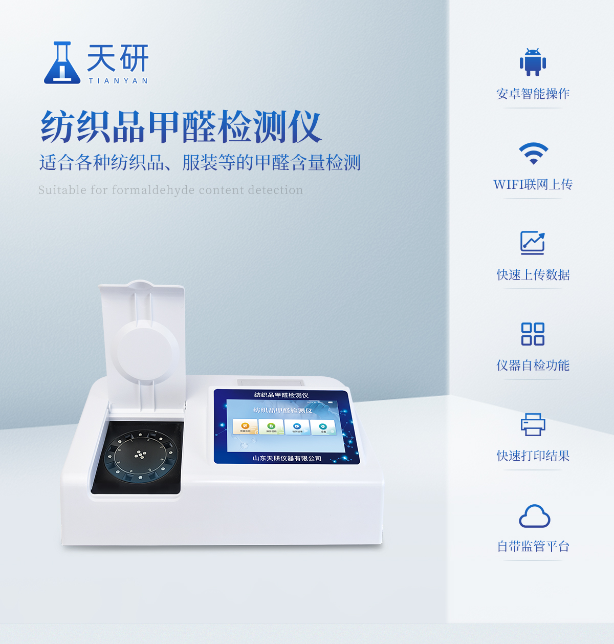 產(chǎn)品介紹:本套紡織品甲醛檢測設備滿足紡織品甲醛含量檢測的中國標準《國家紡織產(chǎn)品基本安全技術規(guī)范》(GB 18401-2010)、《紡織品·甲醛的測定·第1部分:游離和水解的甲醛(水萃取法)》(GB/T 2912.1-2009), 適合各種紡織品、服裝等的甲醛含量檢測。 產(chǎn)品用途: 該紡織品甲醛檢測系統(tǒng)與質(zhì)