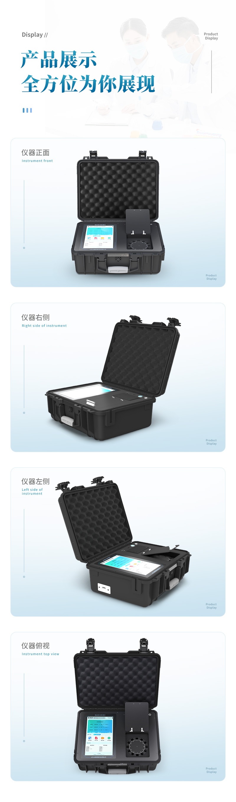 | 儀器采用手提式一體化系統(tǒng)檢測技術,將分光光度模塊、膠體金檢測模塊、新型農(nóng)殘檢測模塊、數(shù)字化管理模塊、無線通訊模塊高度集成于一體,支持檢測200種食品安全檢測項目,同時預留升級檢測方法。 | 儀器檢測模塊標準化、智能化,檢測項目可隨意自由組合。檢測箱體內置多個標準檢測單元,檢測模塊可以調整配置。 | 顯示屏幕:儀器采用10.1英寸豎向液晶觸摸屏顯,搭配運行安卓智能操作系統(tǒng),主控芯片采用ARM Cortex-A7,RK3288/4核處理器,主頻1.88Ghz,操作方便,性能更強。 | 檢測通道:≥12通道;采用精密旋轉比色池設計,使用同芯片同光源校準精度,解決不同光源之間的誤差值,更加準確**。(1-12通道間誤差0.1%,**號:ZL202022821055.2) | 儀器光源:高精度進口四波長冷光源,每個通道均配置 410、520、590、630nm 波長光源,標配**的光路切換裝置,**光路切換功能可實現(xiàn)64波長,并且所有檢測項目可實現(xiàn)所有通道同時檢測。 | 設備可一鍵校準,自動保存校準數(shù)據(jù),自動對比校驗,得到精準光源,采用Android SP存儲數(shù)據(jù),光源數(shù)據(jù)永不丟失,方便每一次使用。 | 通訊接口:配備無線通信模塊、4G(APN)通訊模塊、藍牙傳輸,同時具有雙USB接口以及RJ45網(wǎng)線接口,可以多方式實現(xiàn)數(shù)據(jù)保存及數(shù)據(jù)傳輸 | 存儲方式:支持U盤存儲,標準USB接口,免驅動安裝。檢測結果存儲容量20萬條以上,可生成Excel表格進行拷貝,并具有登錄保護功能。 | 智能化操作系統(tǒng): | 1)操作系統(tǒng):儀器可在同一檢測界面自動對應相關檢測通道,一次性選擇1-12個樣品名稱,無需退出界面,節(jié)省操作時間。并可以對每個通道屬性和樣品信息單獨進行編輯,例如送檢單位、人員,檢測人員等,打印時勾選打印顯示。 | 2)數(shù)據(jù)集成系統(tǒng):設備首頁自動匯總分析檢測數(shù)據(jù),包含:周檢測數(shù)據(jù)、月檢測數(shù)據(jù),全部檢測總數(shù)量,均包含檢測總數(shù),合格數(shù),不合格數(shù),以及相關柱形分析圖,各項檢測數(shù)據(jù)一目了然,無需電腦查詢,更加快捷直觀。 | 3)數(shù)據(jù)庫系統(tǒng):十幾項數(shù)據(jù)庫分類管理儀器:包含項目類型、項目數(shù)據(jù)、檢測數(shù)據(jù)、歷史記錄、國標信息、曲線信息、采樣信息、檢測信息、受檢信息、復核信息、圖表信息、光源校準信息、打印樣式信息、樣品庫信息等等,數(shù)據(jù)庫之間互相協(xié)調聯(lián)動保證數(shù)據(jù)的真實完整性。同時產(chǎn)品數(shù)據(jù)庫以及歷史檢測記錄支持一鍵檢索功能。 | 4)限量規(guī)判系統(tǒng):具有限量查詢、添加物質合規(guī)判定系統(tǒng)。檢測出結果后,系統(tǒng)自動調用系統(tǒng)數(shù)據(jù)庫中相關國標進行比對判定,客觀顯示判定結果是否合格。 | 5)項目預設系統(tǒng):儀器具有任務預設模塊,一鍵提前預設,給出方便快捷的新檢測方案,每一個任務分別可以設置不同的樣品、批次、編號、來源、備注、抽樣信息、檢測信息、受檢信息、復核信息等更多信息。樣品送檢時一鍵調取保存信息,并可多次調取,大大提高檢測效率。 | 6)數(shù)據(jù)監(jiān)管系統(tǒng):同步對接監(jiān)管平臺,數(shù)據(jù)可局域網(wǎng)和互聯(lián)網(wǎng)數(shù)據(jù)上傳,檢測結果可選擇直接傳至食品安全監(jiān)管平臺。進行區(qū)域食品安全監(jiān)管及大數(shù)據(jù)分析處理與數(shù)據(jù)統(tǒng)計,檢測區(qū)域食品安全長短期動態(tài),達到食品安全問題預估、預警。 | 7)打印系統(tǒng):內置全新打印機,新創(chuàng)自定義打印方式,可按需靈活勾選控制:產(chǎn)品合格證(國家農(nóng)業(yè)部標準要求),二維碼,抽樣信息、檢測信息,受檢信息、復核信息、抽樣日期、檢測日期等信息的打印。 | 供電模式:儀器交直流兩用,直流12V供電,可連接車載電源,可配6ah大容量充電鋰電池,電量可實時顯示,方便戶外流動測試。 | 膠體金檢測模塊:采用雙通道CMOS成像處理技術及膠體金免疫層析技術,可同時讀取雙膠體金卡數(shù)據(jù),自動采集、處理分析,將檢測結果顯示,并可根據(jù)參考限值自動判斷檢測結果,可檢測常見的獸藥殘留、生物毒素、抗生素、違禁添加物等。 | 1)探測技術:CMOS成像探測; | 2)檢測通道:1個通道; | 3)檢測方式:消線法和比色法; | 4)顯示模式:陰性或陽性; | 5)曲線形式:軌道式掃描方式,顯示金標卡圖像,實時生成、識別CT曲線圖,無需手動調整,完成檢測后自動退出檢測卡。兼容市場上其他金標卡,使用耗材不受限制。 | 儀器加入遠程升級功能,可定向分客戶分儀器更新,開機后自動更新,客戶無需任何操作,即可升級全新項目。做到了無需退換機器即可實現(xiàn)實時遠程升級檢測儀器。 |