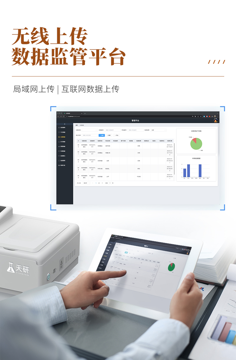 | 儀器采用手提式一體化系統(tǒng)檢測技術(shù),將分光光度模塊、膠體金檢測模塊、新型農(nóng)殘檢測模塊、數(shù)字化管理模塊、無線通訊模塊高度集成于一體,支持檢測200種食品安全檢測項目,同時預(yù)留升級檢測方法。 | 儀器檢測模塊標準化、智能化,可隨意自由組合。檢測箱體內(nèi)置多個標準檢測單元,檢測模塊可以調(diào)整配置。 | 儀器采用全新安卓智能系統(tǒng),主控芯片采用 ARM Cortex-A7,RK3288/4核處理器,10.1寸高清液晶觸摸豎屏,更加**的UI交互界面,運轉(zhuǎn)快捷;儀器配備無線通信模塊: 4G(APN)通訊模塊、Wifi模塊,藍牙傳輸,同時具有雙USB接口以及RJ45接口能以多種方式實現(xiàn)數(shù)據(jù)保存和數(shù)據(jù)傳輸功能。 | 創(chuàng)新檢測模式:★檢測通道:≥12通道;采用精密旋轉(zhuǎn)比色池設(shè)計,使用同芯片同光源校準精度,解決不同光源之間的誤差值。1-12通道間誤差0.1%。(**號:ZL202022821055.2) | ★儀器具有自動識別比色皿檢測功能,即:將樣品比色皿放入儀器后,點擊樣品檢測,儀器自動識別比色皿進行通道檢測。 | 進口高精光源: | 高精度進口四波長冷光源,通道配置 410、520、590、630nm 波長光源,一個光源芯片驅(qū)動一個光源,誤差極小,每臺設(shè)備單獨**校準光源,**比對,同時參照四種不同波段光源全方位覆蓋市面上99%的農(nóng)殘食品項目檢測。 | 膠體金模塊檢測方式:★采用COMS實時成像技術(shù),單金標實時讀卡,通過不同顏色的灰度變化,一秒精準得出結(jié)果。 | 智能操作分析系統(tǒng):★便捷操作系統(tǒng):設(shè)備檢測時可在同一檢測界面自動對應(yīng)相關(guān)檢測通道一次性選擇1-12個樣品名稱,無須退出界面,節(jié)省操作時間。 | ★數(shù)據(jù)集成系統(tǒng):設(shè)備首頁自動統(tǒng)計檢測數(shù)據(jù)包含:周檢測數(shù)據(jù)、月檢測數(shù)據(jù),全部檢測總數(shù)量,均包含檢測總數(shù),合格數(shù),不合格數(shù),以及相關(guān)柱形分析圖,對各項檢測數(shù)據(jù)清晰掌握,無需電腦查詢,更加快捷直觀。 | ★項目預(yù)設(shè)系統(tǒng):支持添加單個及多個相同或不相同的任務(wù)預(yù)設(shè),一鍵快速調(diào)取,每一個任務(wù)分別可以設(shè)置不同的樣品、批次、編號、來源、備注、抽樣信息、檢測信息、受檢信息、復核信息等更多信息。無縫鏈接平臺和APP實時查看下發(fā)任務(wù)。 | ★數(shù)據(jù)監(jiān)管系統(tǒng):同步對接監(jiān)管平臺,數(shù)據(jù)可局域網(wǎng)和互聯(lián)網(wǎng)數(shù)據(jù)上傳,檢測結(jié)果可選擇直接傳至食品安全監(jiān)管平臺。集成OSS輸出存儲服務(wù)、區(qū)分設(shè)備定向管理應(yīng)用,進行區(qū)域食品安全監(jiān)管及大數(shù)據(jù)分析處理與數(shù)據(jù)統(tǒng)計,檢測區(qū)域食品安全長短期動態(tài),達到食品安全問題預(yù)估、預(yù)警。 | ★自定義打印系統(tǒng):內(nèi)置全新打印系統(tǒng),新創(chuàng)自定義打印方式,可按需靈活設(shè)置開啟或關(guān)閉:產(chǎn)品合格證(國家農(nóng)業(yè)部標準要求),二維碼,抽樣信息、檢測信息,受檢信息、復核信息、抽樣日期、檢測日期等信息的打印。 | ★系統(tǒng)遠程更新功能:可定向分客戶分儀器更新系統(tǒng),按照不同客戶后期實際需求添加項目,無需機器返廠,即可遠程實時升級全新系統(tǒng),節(jié)省時間成本及避免運輸造成設(shè)備損壞。 | 儀器主機采用一體化防水、抗壓、防撞擊、防腐蝕箱體設(shè)計,同時配備交直流供電,可連接車載電源,可選配大容量充電鋰電池,滿足現(xiàn)場野外檢測需求。 | 安全證書,放心保障:儀器具有中國計量科學研究院校準證書,**認證。 |