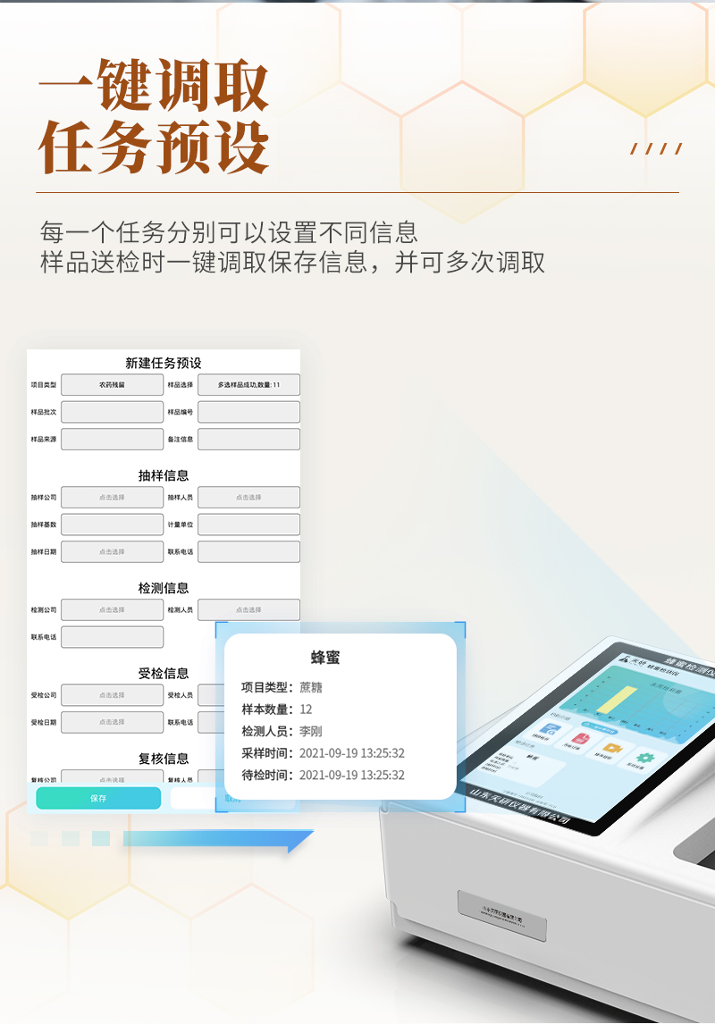 檢測項目:蜂蜜蔗糖、蜂蜜還原糖(葡萄糖和果糖)、蜂蜜羥甲基糠醛、蜂蜜酸度、蜂蜜中農(nóng)藥殘留、蜂蜜淀粉酶值、蜂蜜中脯氨酸、蜂蜜水分、蜂蜜糖分、蜂蜜中重金屬(鉛、鎘、汞)、蜂蜜中抗生素(氯霉素、四環(huán)素、磺胺類、呋喃類、喹諾酮類)、蜂蜜中灰分,應(yīng)用范圍:應(yīng)用于現(xiàn)場檢測蜂蜜蔗糖、葡萄糖和果糖、羥甲基糠醛、酸度、農(nóng)殘、淀粉酶、脯氨酸、水分、糖分、重金屬、抗生素、灰分含量的蜂蜜快速檢測儀,可廣泛應(yīng)用于各類蜂蜜品質(zhì)的快速定量檢測。