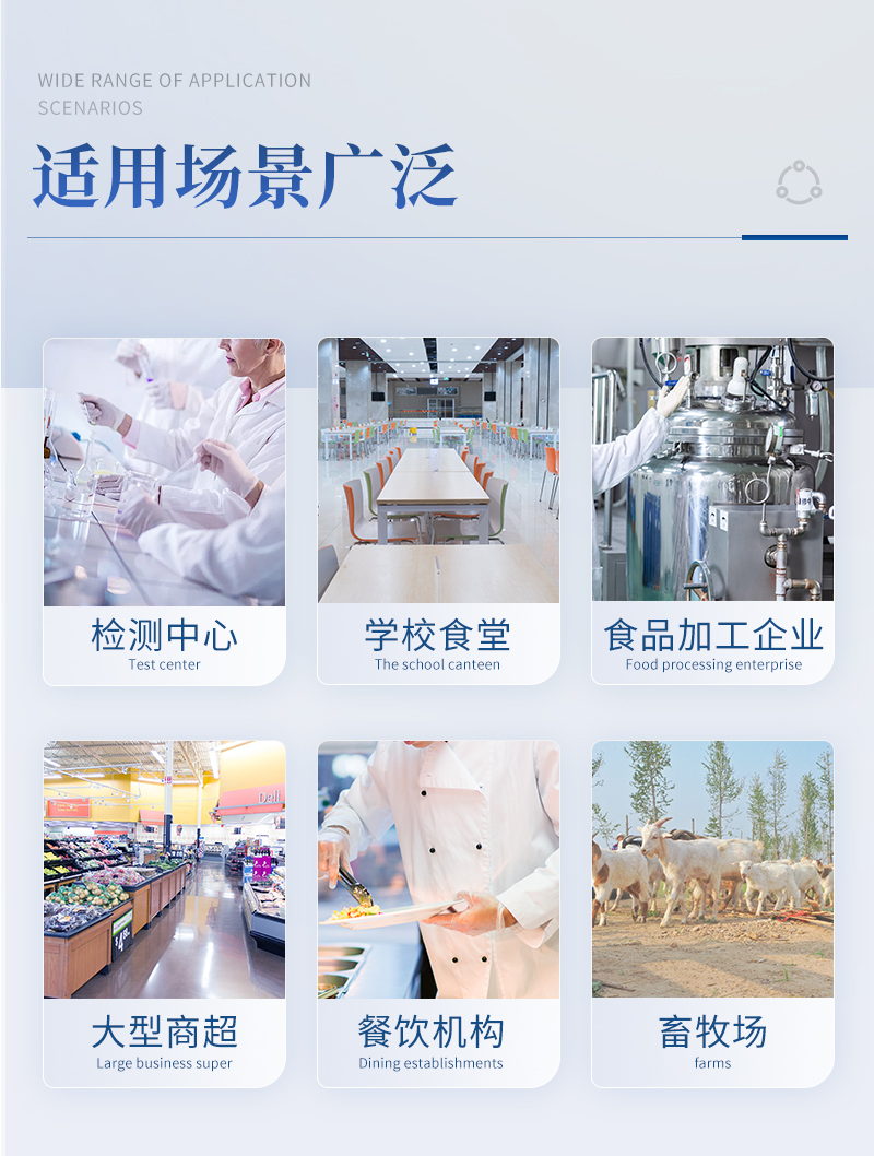 該病害肉檢測儀為集成化食品安全快速檢測分析設備,目前已于餐飲檢測、食藥監(jiān)局、衛(wèi)生部門、肉制品食品深加工企業(yè)、商場超市、質(zhì)量監(jiān)督檢驗、工商管理、各大食品安全監(jiān)測系統(tǒng)等單位廣泛使用。