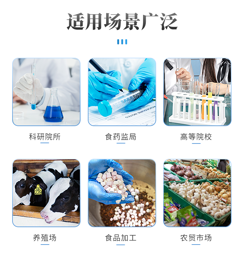 可快速定量檢測各類食品中的甲醛的含量,儀器預留其他項目檢測程序和端口,根據(jù)日后需求可方便的自主增加檢測項目。日后可升級為檢測,水產(chǎn)品,肉制品,面制品的綜合類型儀器。