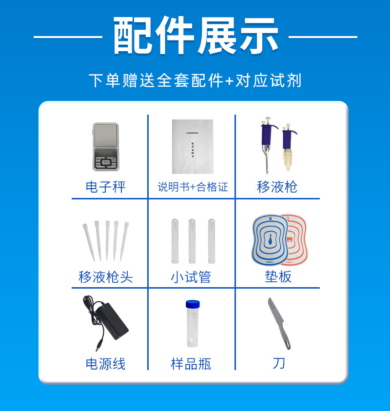 金標(biāo)度數(shù)儀快速定量檢測(cè)獸藥殘留、抗生素類(lèi)殘留、激素類(lèi)殘留、毒素類(lèi)殘留,化學(xué)類(lèi)殘留等幾十種項(xiàng)目并可根據(jù)用戶需要擴(kuò)充新的檢測(cè)項(xiàng)目如農(nóng)藥殘留、食品添加劑、色素、可現(xiàn)場(chǎng)快速檢測(cè)農(nóng)藥殘留、鹽酸克倫特羅、沙丁胺醇、萊克多巴胺、四環(huán)素類(lèi)、硝基呋喃類(lèi)、磺胺類(lèi)、沙星類(lèi)、氯霉素、孔雀石綠磺胺類(lèi)、豬藍(lán)耳病毒、豬瘟病毒、黃曲霉毒素B1、豬偽狂犬病毒、豬偽狂犬病毒gE蛋白、豬口蹄疫3ABC蛋白、豬口蹄疫病毒IgG、豬細(xì)小病毒、雞禽流感等定性和定量快速檢測(cè)等、并且可以連接食品安全監(jiān)控系統(tǒng)。