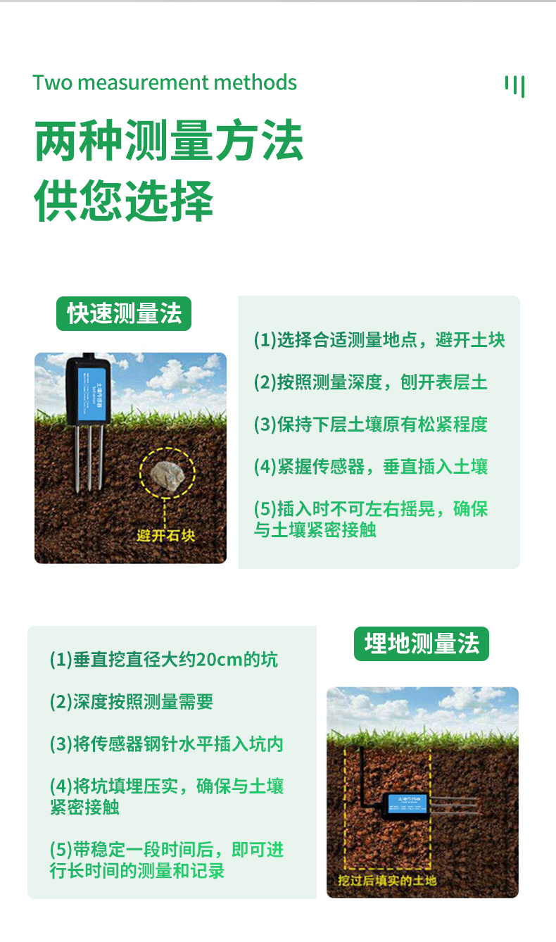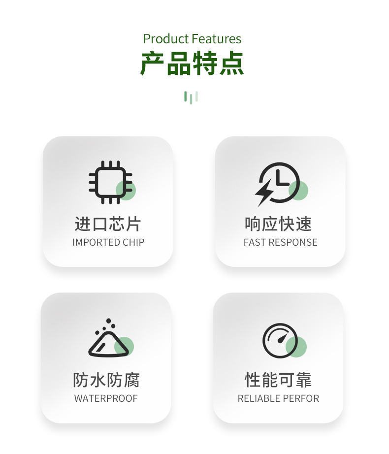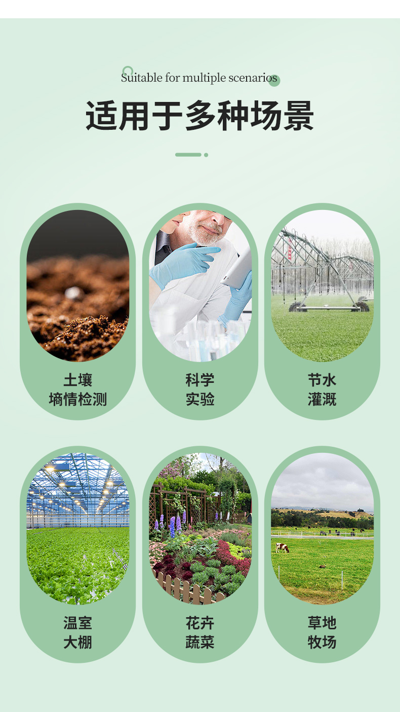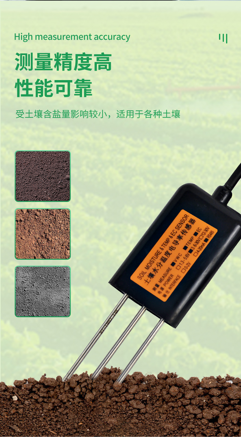 | (1)土壤含水率、電導(dǎo)率以及溫度三參數(shù)合一。 | (2)也可用于水肥一體溶液、以及其他營養(yǎng)液與基質(zhì)的電導(dǎo)率。 | (3)電極采用特殊處理的合金材料,可承受較強(qiáng)的外力沖擊,不易損壞。 | (4)完全密封,耐酸堿腐蝕,可埋入土壤或直接投入水中進(jìn)行長期動(dòng)態(tài)檢測。 | (5)精度高,響應(yīng)快,互換性好,探針插入式設(shè)計(jì)保證測量**,性能可靠。 | (6)完善的保護(hù)電路與多種信號(hào)輸出接口可選。 |