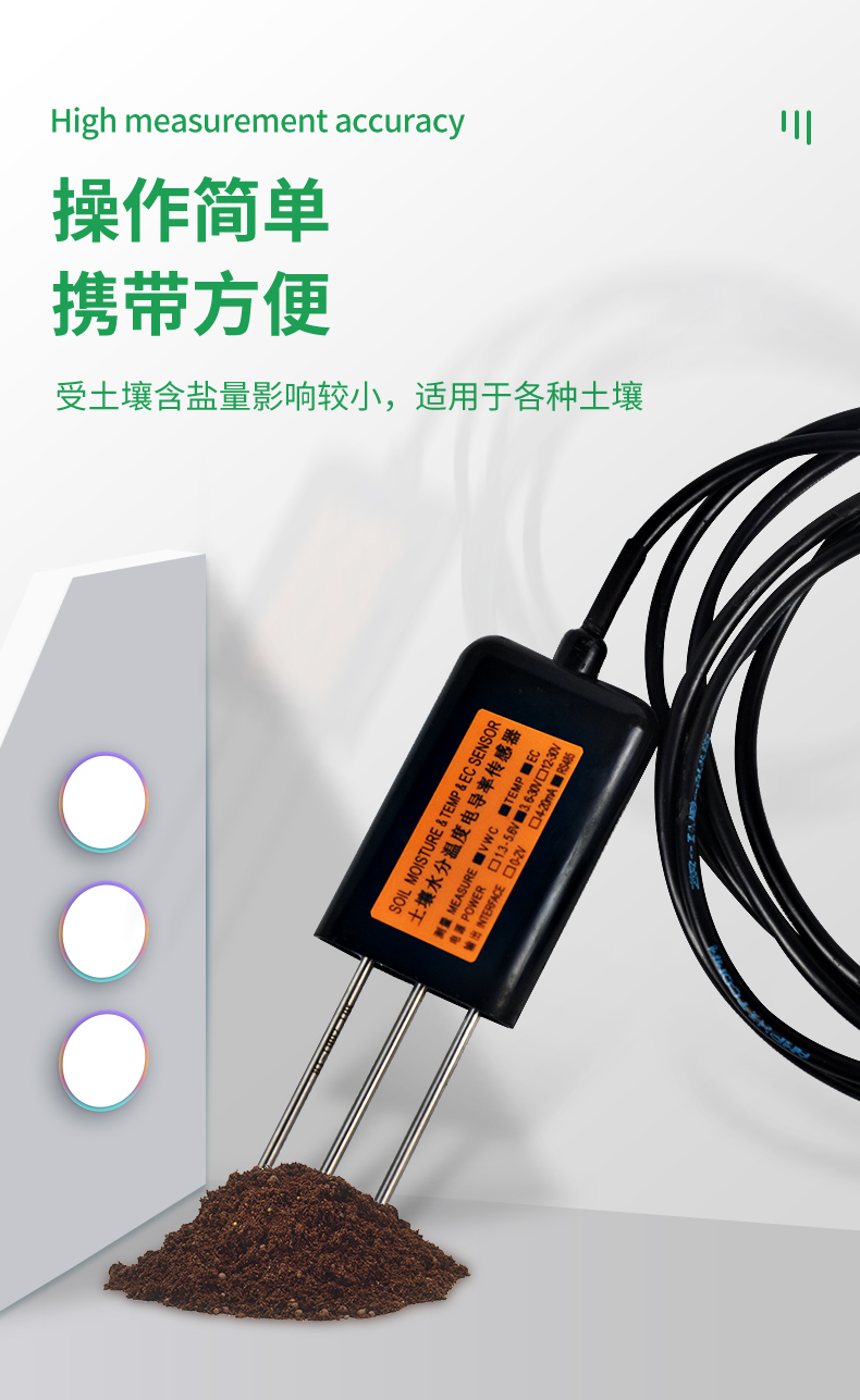 MEC10土壤水分/電導(dǎo)率/溫度傳感器性能穩(wěn)定靈敏度高,是觀測和研究鹽漬土的發(fā)生、演變、改良以及水鹽動(dòng)態(tài)的重要工具。通過測量土壤的介電常數(shù),能直接穩(wěn)定地反映各種土壤的真實(shí)水分含量。MEC10土壤水分傳感器可測量土壤水分的體積百分比,是符合目前**標(biāo)準(zhǔn)的土壤水分測量方法。適用于土壤墑情監(jiān)測、科學(xué)試驗(yàn)、節(jié)水灌溉、溫室大棚、花卉蔬菜、草地牧場、土壤速測、植物培養(yǎng)、污水處理、精細(xì)農(nóng)業(yè)等場合。
