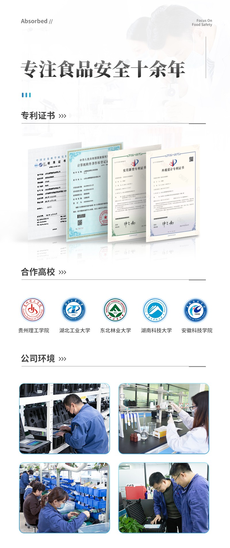 | 儀器采用臺式一體化系統(tǒng)檢測技術(shù),將分光光度模塊、新型農(nóng)殘檢測模塊、數(shù)字化管理模塊、無線通訊模塊高度集成于一體,支持檢測200種食品安全檢測項(xiàng)目,同時(shí)預(yù)留升級檢測方法。 | 儀器檢測模塊標(biāo)準(zhǔn)化、智能化,可隨意自由組合。檢測箱體內(nèi)置多個(gè)標(biāo)準(zhǔn)檢測單元,檢測模塊可以調(diào)整配置。 | 儀器采用全新安卓智能系統(tǒng),主控芯片采用 ARM Cortex-A7,RK3288/4核處理器,10.1寸高清液晶觸摸豎屏,更加**的UI交互界面,運(yùn)轉(zhuǎn)快捷;儀器配備無線通信模塊: 4G(APN)通訊模塊、Wifi模塊,藍(lán)牙傳輸,同時(shí)具有雙USB接口以及RJ45接口能以多種方式實(shí)現(xiàn)數(shù)據(jù)保存和數(shù)據(jù)傳輸功能。 | 創(chuàng)新檢測模式: | ★檢測通道:≥12通道;采用精密旋轉(zhuǎn)比色池設(shè)計(jì),使用同芯片同光源校準(zhǔn)精度,解決不同光源之間的誤差值。1-12通道間誤差0.1%。(**號:ZL202022821055.2) | ★儀器具有自動識別比色皿檢測功能,即:將樣品比色皿放入儀器后,點(diǎn)擊樣品檢測,儀器自動識別比色皿進(jìn)行通道檢測。 | 進(jìn)口高精光源: | 高精度進(jìn)口四波長冷光源,通道配置 410、520、590、630nm 波長光源,一個(gè)光源芯片驅(qū)動一個(gè)光源,誤差極小,每臺設(shè)備單獨(dú)**校準(zhǔn)光源,**比對,同時(shí)參照四種不同波段光源全方位覆蓋市面上99%的農(nóng)殘食品項(xiàng)目檢測。 | 智能化操作系統(tǒng): | 便捷操作系統(tǒng):設(shè)備檢測時(shí)可在同一檢測界面自動對應(yīng)相關(guān)檢測通道一次性選擇1-12個(gè)樣品名稱,無須退出界面,節(jié)省操作時(shí)間。 | 數(shù)據(jù)集成系統(tǒng):設(shè)備首頁自動統(tǒng)計(jì)檢測數(shù)據(jù)包含:周檢測數(shù)據(jù)、月檢測數(shù)據(jù),全部檢測總數(shù)量,均包含檢測總數(shù),合格數(shù),不合格數(shù),以及相關(guān)柱形分析圖,對各項(xiàng)檢測數(shù)據(jù)清晰掌握,無需電腦查詢,更加快捷直觀。 | 項(xiàng)目預(yù)設(shè)系統(tǒng):支持添加單個(gè)及多個(gè)相同或不相同的任務(wù)預(yù)設(shè),一鍵快速調(diào)取,每一個(gè)任務(wù)分別可以設(shè)置不同的樣品、批次、編號、來源、備注、抽樣信息、檢測信息、受檢信息、復(fù)核信息等更多信息。無縫鏈接平臺和APP實(shí)時(shí)查看下發(fā)任務(wù)。 | 數(shù)據(jù)監(jiān)管系統(tǒng):同步對接監(jiān)管平臺,數(shù)據(jù)可局域網(wǎng)和互聯(lián)網(wǎng)數(shù)據(jù)上傳,檢測結(jié)果可選擇直接傳至食品安全監(jiān)管平臺。集成OSS輸出存儲服務(wù)、區(qū)分設(shè)備定向管理應(yīng)用,進(jìn)行區(qū)域食品安全監(jiān)管及大數(shù)據(jù)分析處理與數(shù)據(jù)統(tǒng)計(jì),檢測區(qū)域食品安全長短期動態(tài),達(dá)到食品安全問題預(yù)估、預(yù)警。 | 自定義打印系統(tǒng):內(nèi)置全新打印系統(tǒng),新創(chuàng)自定義打印方式,可按需靈活設(shè)置開啟或關(guān)閉:產(chǎn)品合格證(國家農(nóng)業(yè)部標(biāo)準(zhǔn)要求),二維碼,抽樣信息、檢測信息,受檢信息、復(fù)核信息、抽樣日期、檢測日期等信息的打印。 | 系統(tǒng)遠(yuǎn)程更新功能:可定向分客戶分儀器更新系統(tǒng),按照不同客戶后期實(shí)際需求添加項(xiàng)目,無需機(jī)器返廠,即可遠(yuǎn)程實(shí)時(shí)升級全新系統(tǒng),節(jié)省時(shí)間成本及避免運(yùn)輸造成設(shè)備損壞。 | 儀器主機(jī)采用一體化防水、抗壓、防撞擊、防腐蝕箱體設(shè)計(jì),同時(shí)配備交直流供電,可連接車載電源,可選配大容量充電鋰電池,滿足現(xiàn)場野外檢測需求。 | 安全證書,放心保障:儀器具有中國計(jì)量科學(xué)研究院校準(zhǔn)證書,**認(rèn)證。 |