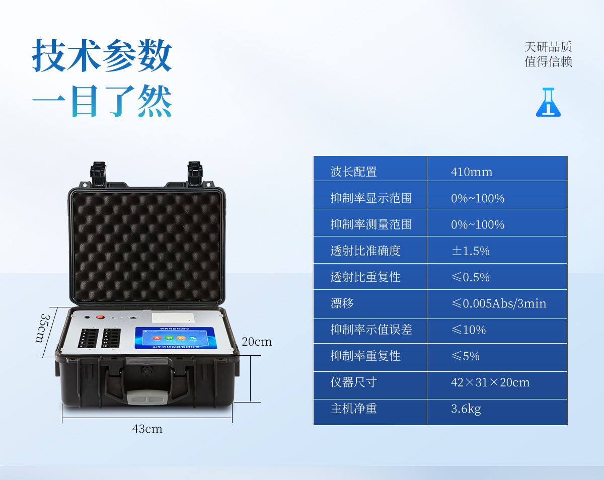 主要參數(shù): 主要參數(shù): 隨著人民生活水平的不斷提升,市場對茶葉的把控愈加嚴(yán)格。針對現(xiàn)狀,我司專門研發(fā)生產(chǎn)--茶葉專用的農(nóng)藥殘留速測儀;定位茶農(nóng)、茶商、茶葉企業(yè)使用。此外還可用于果蔬茶生產(chǎn)基地和農(nóng)貿(mào)批發(fā)銷售市場現(xiàn)場檢測,餐館、學(xué)