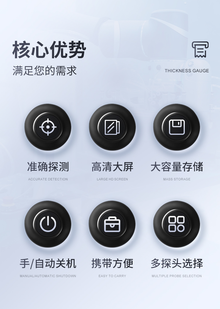 涂鍍層測(cè)厚儀是一款測(cè)量磁性金屬材料表面涂鍍層覆蓋層物體厚度的專業(yè)無(wú)損檢測(cè)儀器。采用磁性測(cè)厚方法,可無(wú)損地測(cè)量磁性金屬基體(如:鋼、鐵)上非磁性覆層的厚度(鍍鋅、鉻、錮、琺瑯、橡膠、粉末、油漆、電泳、搪瓷、噴塑、涂料、防腐防火涂層等),本儀器結(jié)構(gòu)精密牢固,重復(fù)性好,性能猶佳,使用簡(jiǎn)單,攜帶便捷。