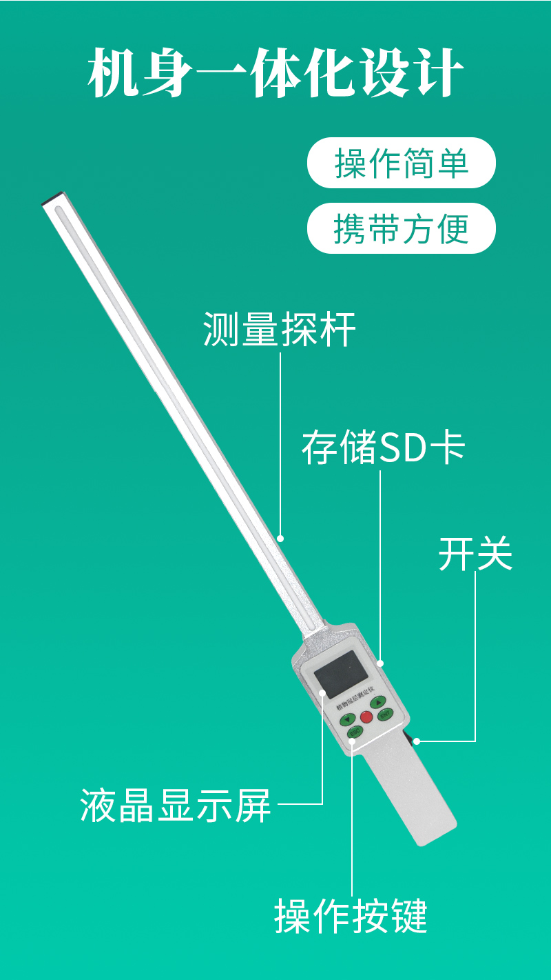 植物冠層圖像分析儀由魚眼圖像捕捉探頭(由魚眼鏡頭及CCD圖像傳感器組成)、內(nèi)置25個(gè)PAR傳感器的測(cè)量桿(搖臂)、筆記本電腦、圖像采集軟件及圖像 分析軟件、高容量的可充電電池組組成。魚眼探頭安裝在一個(gè)很輕的搖臂的頂端,它可以獲取150°視角的魚眼圖像。圖像的顯示和存貯由配置的筆記本計(jì)算機(jī)完 成。