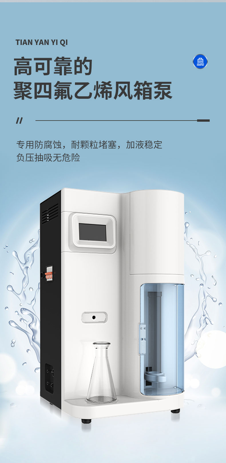 用于檢測食品、藥品、土壤、化工、農(nóng)業(yè)、林業(yè)、材料、環(huán)境監(jiān)測等領域氮含量或蛋白質含量測定、陽離子交換量測定。