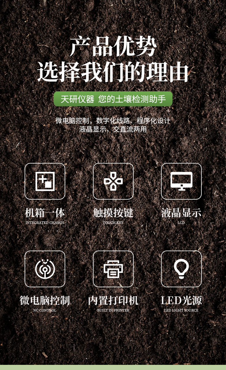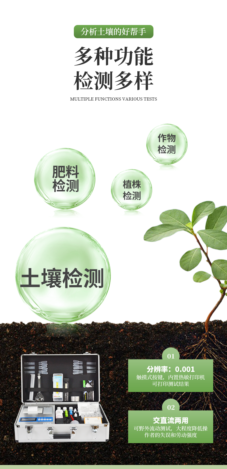特點:《機箱/藥劑一體式鋁合金機箱》設(shè)計,便于攜帶、堅固耐用,配套成品藥劑。微電腦控制,數(shù)字化線路、程序化設(shè)計,液晶顯示,交直流兩用,可野外流動測試,大程度降低操作者的失誤和勞動強度。分辨率:0.001,觸摸式按鍵,內(nèi)置熱敏打印機,可打印測試結(jié)果??蓹z測土壤及化肥、有機肥、植株中的速效氮、有效磷、速效鉀、