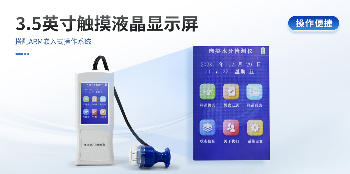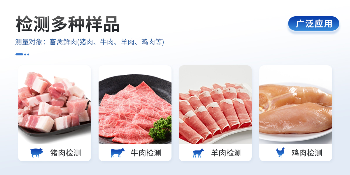 技術(shù)參數(shù): 1、測量對象:畜禽鮮肉(豬肉、牛肉、羊肉、雞肉等); 2、測量范圍:65~85%; 3、采樣時間:一次采樣時間< 2s; 4、測量誤差:在70~78%范圍內(nèi)≤1.0%;
