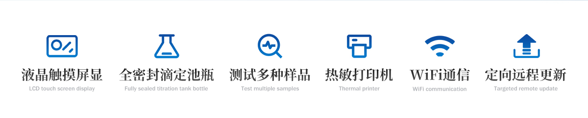 | 1.采用了原裝進(jìn)口7.0英寸800*480像素真彩TFT-LCD大屏幕彩色顯示器,鍵盤采用人體感應(yīng)式觸摸屏,全中文操作界面,軟件界面顯示直觀大方,內(nèi)容豐富,操作內(nèi)容方便自如,漢字提示,靈活、具有檢測(cè)靈敏閾高、操作簡(jiǎn)單、測(cè)試速度快、重復(fù)性好等特點(diǎn). | 2.儀器具有試驗(yàn)結(jié)果存儲(chǔ)、打印、計(jì)算功能;樣品測(cè)定過(guò)程由儀器自動(dòng)控制,攪拌、測(cè)定60秒左右自動(dòng)完成,直接顯示測(cè)定結(jié)果;全密封滴定池瓶,避免試劑與人接觸,也避免環(huán)境濕度的影響;儀器中文液晶顯示,并具有自動(dòng)計(jì)算和打印功能,能打印出百分含量、樣品編號(hào)、試驗(yàn)員、實(shí)驗(yàn)日期等內(nèi)容;儀器準(zhǔn)確度為:①水含量小于10微克水時(shí),測(cè)量值誤差小于2ug水;②水含量在10微克-1000微克水時(shí),測(cè)量誤差≤2ug水;③水含量在1000微克以上時(shí),測(cè)量值誤差≤0.2%(不含進(jìn)樣誤差); | 3.核心主機(jī)采用TI 公司AM3354處理器,Cortex-A8內(nèi)核,1GHz主頻;操作系統(tǒng)采用Windows Embedded Compact 7實(shí)時(shí)工控系統(tǒng)。徹底擯棄了無(wú)核無(wú)操裸奔的單片機(jī),真正實(shí)現(xiàn)了儀器操控的現(xiàn)代化,使儀器步入新的智能時(shí)代。 |
