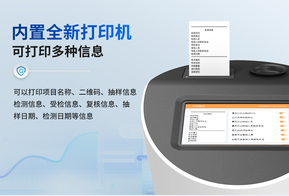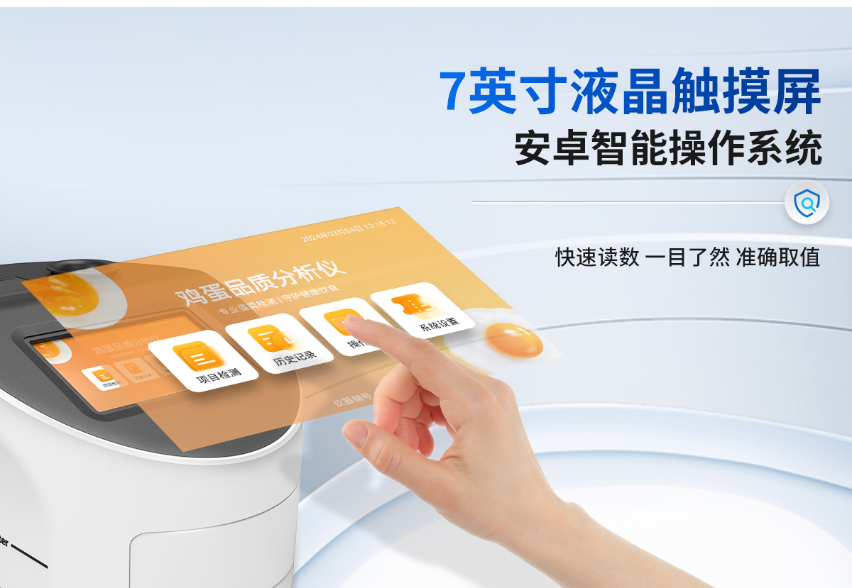 隨著消費(fèi)者對食品安全問題的日益關(guān)注,雞蛋品質(zhì)檢測成為了保障雞蛋質(zhì)量、維護(hù)消費(fèi)者健康權(quán)益的重要手段。我司生產(chǎn)的雞蛋品質(zhì)檢測儀可通過專業(yè)的檢測項(xiàng)目和方法,進(jìn)行雞蛋的品質(zhì)檢測和分析。