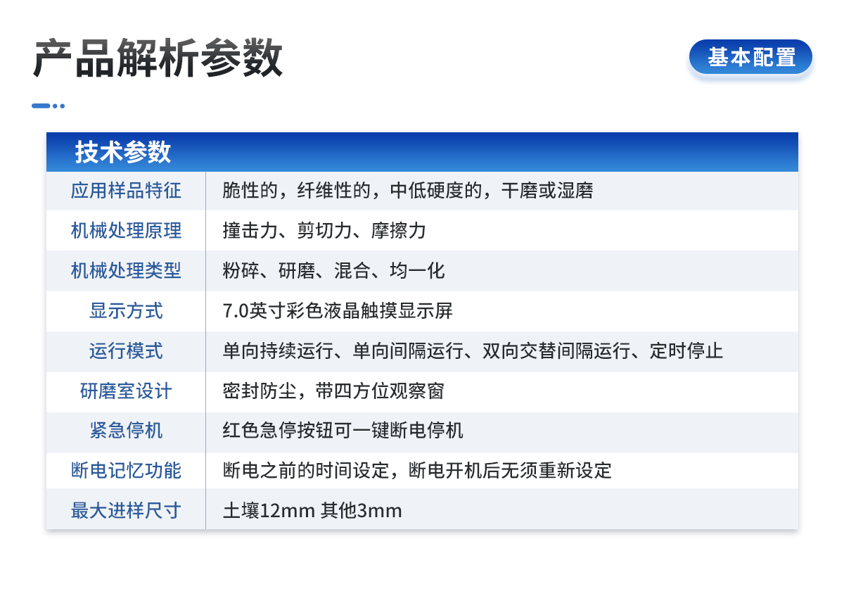 技術(shù)參數(shù): 應(yīng)用領(lǐng)域:土壤、地質(zhì)、環(huán)保、第三方檢測(cè)、農(nóng)牧業(yè)、農(nóng)產(chǎn)品質(zhì)量、資源與環(huán)境等,土壤制樣、重金屬分析 應(yīng)用樣品特征:脆性的,纖維性的,中低硬度的,干磨或濕磨 儀器機(jī)
